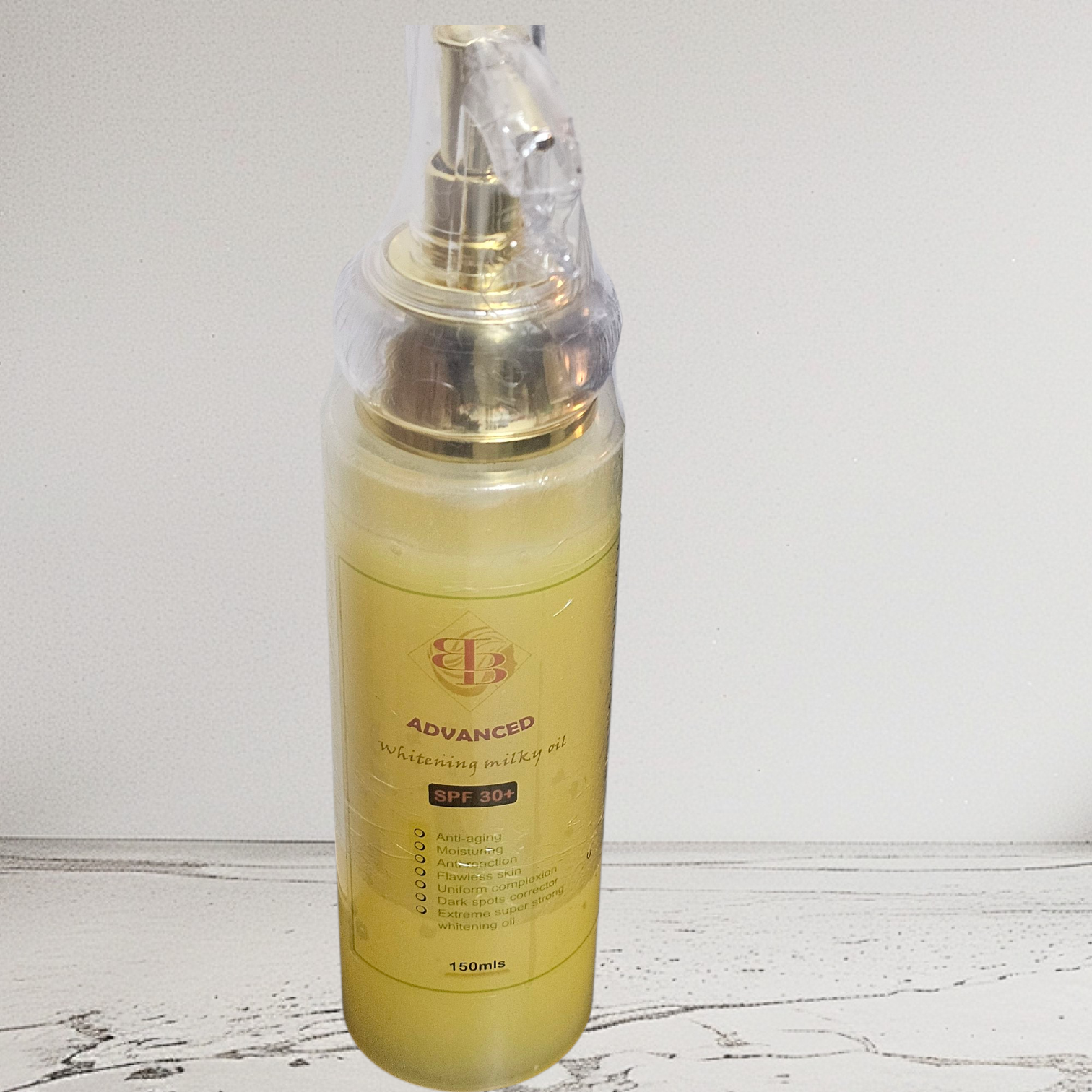 Description:Milky Body oil specifically formulated to enhance and nurture white skin. This oil is infused with potent extracts and vitamins. This oil works to reduce the appearance of dark spots, hyperpigmentation, and uneven skin tone.It absorbed effortlessly into the skin leaving the skin silky,radiant,glassy looking,soft, supple, deeply nourished, beautiful and rich(Goddess)With regular use, our Goddess Premium Ultra luxury whitening &Repair oil helps to unveil a luminous, pearly complexion, promoting a youthful and radiant appearance.